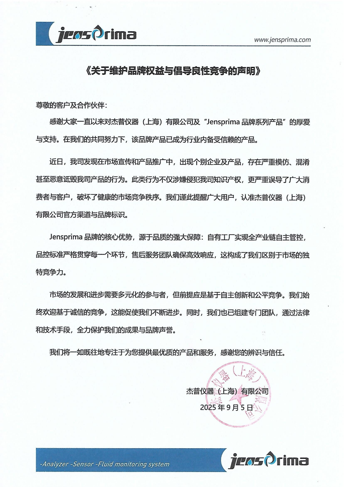 關(guān)于維護(hù)品牌權(quán)益暨倡導(dǎo)良性競爭的聲明